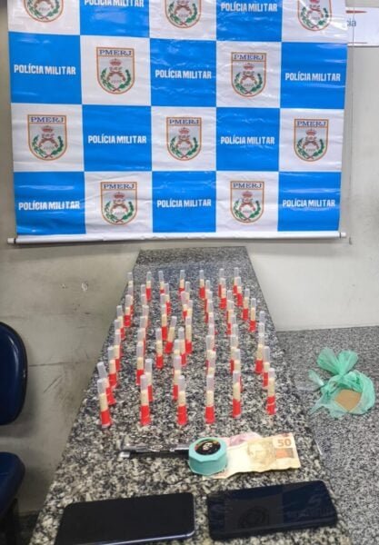 Durante a revista, os agentes encontraram com o condutor da motocicleta 72 pinos de cocaína e R$ 60 em dinheiro. Com o passageiro, foi apreendido um telefone celular, além de materiais utilizados no consumo de drogas.