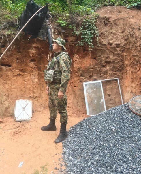 Durante a fiscalização, os agentes localizaram aproximadamente 400 metros quadrados de área degradada na região da Freguesia de Santana. Segundo os policiais, uma trilha levou a uma construção em alvenaria com indícios de habitação, mas desocupada no momento da abordagem. Nas imediações, os militares encontraram um píer com aparência de construção recente e diversos materiais de obra, como vigas pré-moldadas, areia e brita.