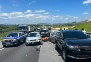 Engavetamento com quatro veículos trava Dutra, em Resende, e deixa ferido