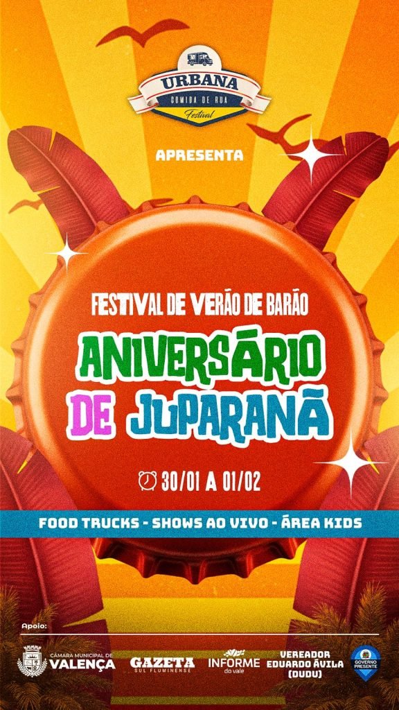 O 2º distrito de Valença, Barão de Juparanã, comemora seu aniversário de criação no dia 31 de janeiro com uma programação especial. Entre os dias 30 de janeiro e 1º de fevereiro, acontece o Festival de Verão de Barão, reunindo food trucks, shows ao vivo e área kids, oferecendo lazer e entretenimento para toda a … Continue lendo Festival de Verão celebra aniversário de Barão de Juparanã