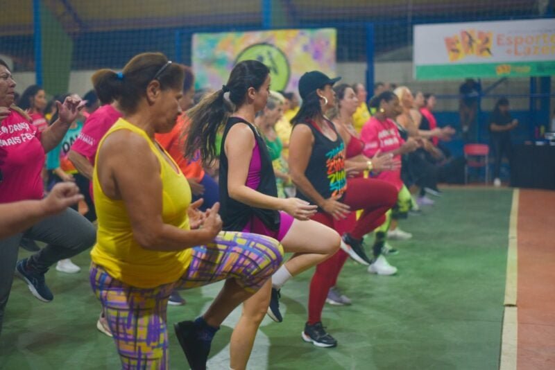 A Zumba é uma atividade aeróbica inspirada em ritmos de dança e reconhecida pelos benefícios à saúde, como a melhora do condicionamento físico, da saúde cardiovascular, da coordenação motora e da percepção espacial. A modalidade alia exercício físico, lazer e promoção da qualidade de vida, sendo amplamente praticada pelo público feminino.