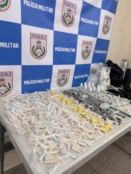 Dentro da casa, os policiais encontraram mochilas escondidas sob a cama com grande quantidade de entorpecentes, incluindo cocaína, maconha, haxixe e crack. Também foram apreendidos dinheiro em espécie e um rádio comunicador, utilizado, segundo a polícia, para contato entre integrantes do tráfico.