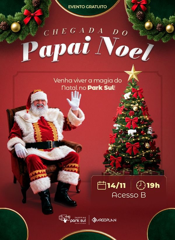 Papai Noel chega ao Park Sul no próximo dia 14 (sexta-feira)