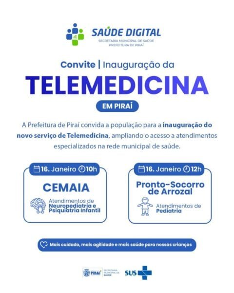 Foto: Divulgação Piraí – A Prefeitura de Piraí implantará o serviço de telemedicina na rede municipal de saúde, com início previsto para esta sexta-feira (16). A iniciativa amplia o acesso da população a atendimentos especializados por meio do uso de tecnologia, com foco inicial na área pediátrica. Ao longo do dia, o município realizará duas … Continue lendo Piraí implanta serviço de telemedicina na rede municipal de saúde