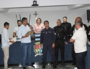 Foto: Divulgação Barra Mansa – Policiais militares da 2ª Companhia de Barra Mansa foram homenageados na manhã desta terça-feira (18) durante sessão ordinária da Câmara Municipal. A moção de congratulação foi concedida por indicação do presidente da Casa, vereador Paulo Sandro, em reconhecimento aos serviços prestados à segurança pública no município. Foram homenageados o 2º … Continue lendo Policiais da 2ª Companhia da PM são homenageados na Câmara de Barra Mansa