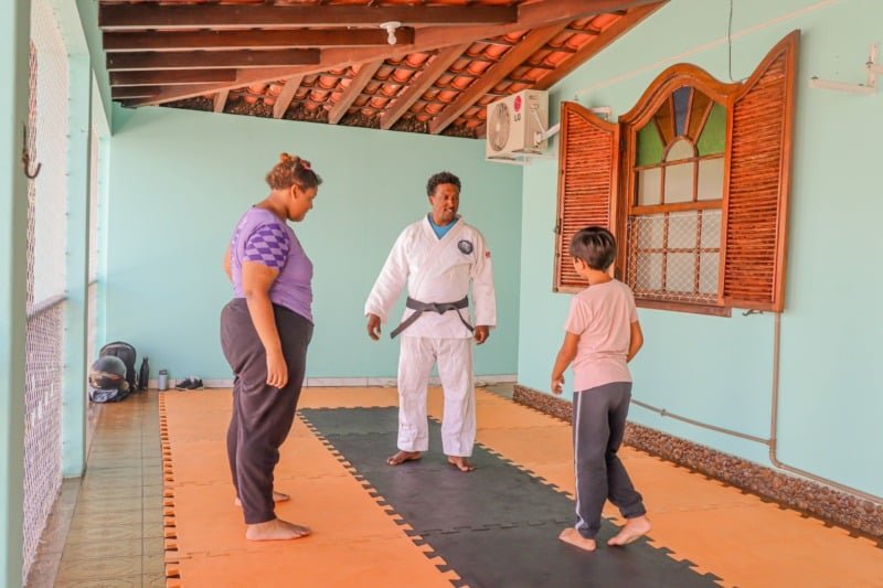 Responsável pelas atividades físicas, o professor Diogo Lopes observa que o judô ajuda a desenvolver habilidades que vão além da prática esportiva.